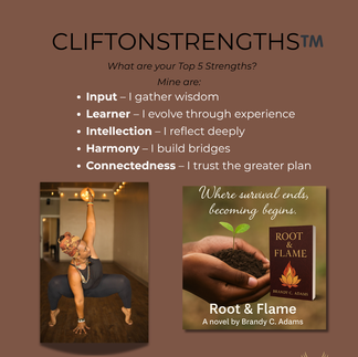 #FENIXYogawithBrandy #CliftonStrengths #RootAndFlame #ThoughtsFromAPandemicYogi #InputLearnerIntellectionHarmonyConnectedness #VeteranVoices #BlackWomenWriters #HealingThroughStory #MindfulLeadership #StrengthsBasedProductivity